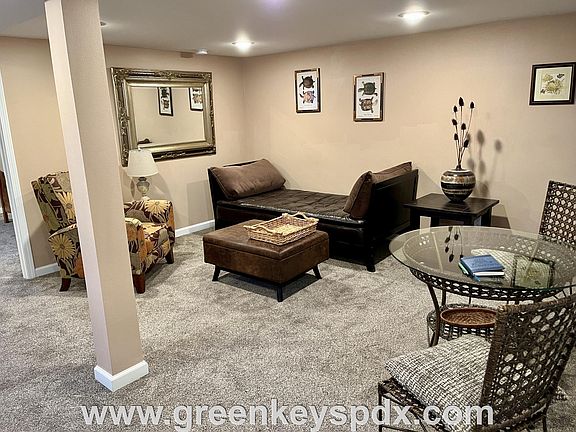FULLY FURNISHED Beautiful new 1-bedroom 1-bathroom fully furnished unit on lower level The new home features: * Spacious living room with tasteful decor * Luxury plank vinyl flooring * New stainless steel appliances * Fully equipped kitchen with electric range and microwave oven * Full bathroom with enclosed shower * Washer and dryer in unit * Totally equipped with everything you need * Energy efficient heating and central A/C provided by minisplits Great location in Arbor Lodge! Easy access to I-5 North or South from Lombard Street. Close to Arbor Lodge Park. Convenient to Interstate Fred Meyer and New Seasons. Close to all the shops and restaurants in Kenton. Walk Score is 87 out of 100 (Very Walkable) Bike Score is 100 out of 100 (Biker's Paradise) Utilities: Owner pays for garbage. Tenant will be billed back for their fair share of gas, electricity, and water-sewer via the Green Keys portal. Tenants will have access to bills to monitor useage. Tenants may secure Internet service (if desired) through the provider of their choice. Pets: Sorry, no pets due to allergies. Yard Care: Provided. Note: Look for the letter "B" on the front door. The main house is Unit A and the apartment below it is Unit B. Steps to take: 1. View the video tour by going to the greenkeyspdx website, clicking on Our Listings, and then click on the blue Video Tour button under the address on 2327-B N Buffalo. 2. Contact Green Keys to schedule a showing. 3. If you like your in-person tour, apply online at greenkeyspdx.com by clicking on the For Renters tab. The application period opens at 9:30 pm October 21 (72 hours after ad posting). Application fee: $45 per adult (18 or older) Screening criteria: Credit score of at least 650; monthly household income of at least 2.5 x rent. Applications will not be considered complete until the online application has been filled out completely and the application fee has been received. Move-in Costs: First month's rent plus a refundable security deposit that is $40 to $50 less than rent Lease: 3-month minimum. Can be extended on a month by month basis by mutual agreement between owners and tenants. Lease: Short-term leases of at least 3 months are permitted and may be extended, as needed, with written requests.