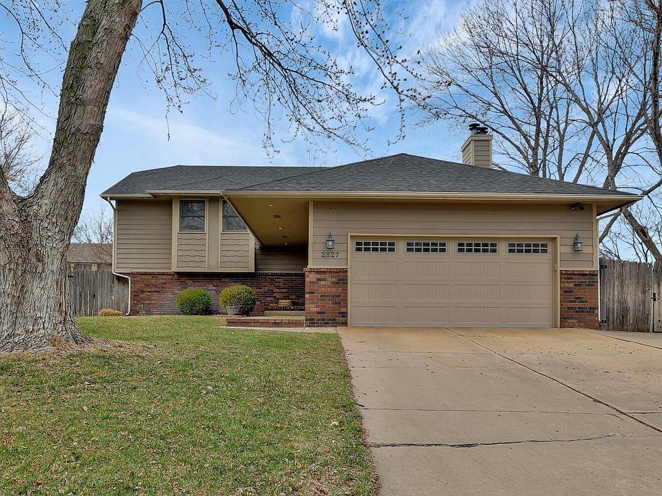 This wonderful home in Derby has everything you're looking for - Great curb appeal with mature trees, a neutral interior with a wood burning fireplace in the living room, and hardwood floors in the dining room and master bedroom! Kitchen has lovely white cabinets, a breakfast nook, and pantry area. The upper level includes the master bedroom with en suite bathroom and walk-in closet. Two additional bedrooms and a full bath complete this floor. Downstairs is a large family room, also with a wood burning fireplace, perfect for entertaining! Two large bedrooms, and updated bathroom, and great storage room complete the lower level. Outside the backyard is fully fenced with a deck and storage shed. Don't miss out on this amazing home in a great neighborhood and near schools with access to shopping and dining!