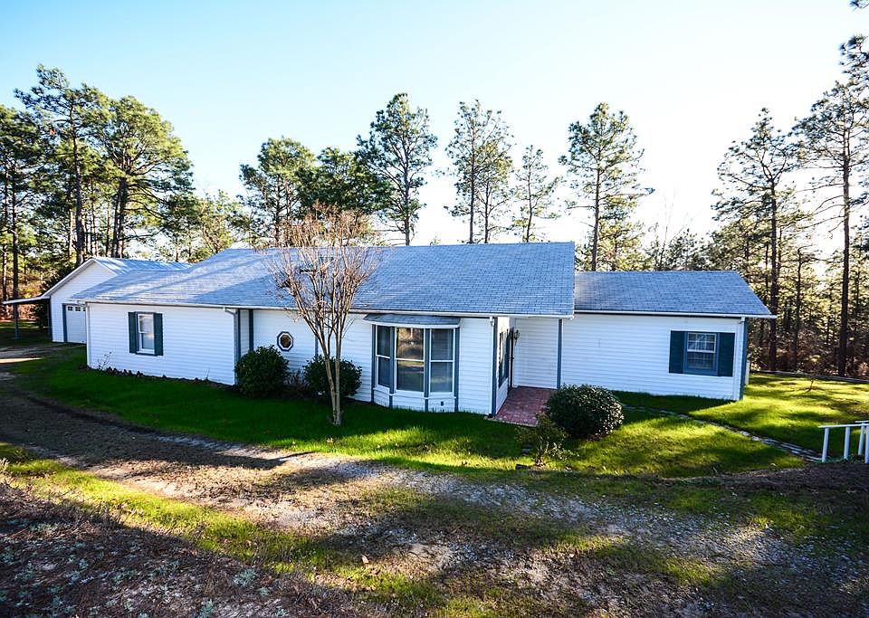 Great home with updates located close to I-20. Sale includes 1 acre, the house, the garage, and workshop. Additional land totaling up to 12 acres, which could potentially have commercial value in the future, can be purchased for 8k/acre or all the land and house together for $240,000. The home has 2 bedrooms and an office that could work for a 3rd bedroom. The floor plan is very open and has engineered hardwood floors in the living room and dining room. The kitchen has a tile floor and counters