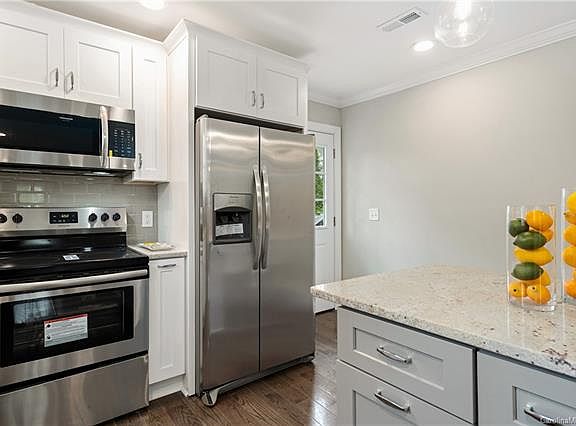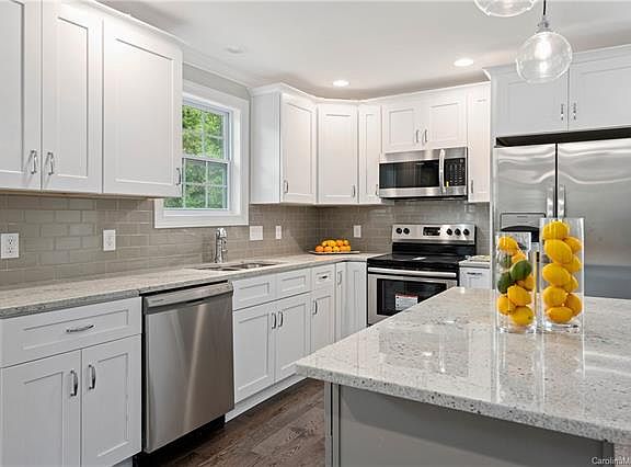 Turn-key Revolution Park bungalow within walking distance to the Light Rail and Southend. This is one of the hottest areas in Charlotte and there are many renovations underway in this block (5+ underway or just finished) and the surrounding area. Three full bedrooms plus a separate office. You will love entertaining friends and family in the large and open living area! Features beautiful New flooring, New kitchen with upgraded granite counters, New SS appliances and island. Master bath has a New walk-in shower and amazing upgraded granite dual sink vanity. Hall bath has tile tube surround and upgraded quartz top. Side terrace leads to huge backyard which backs up to the greenway so no one will ever build behind you! New roof, New windows, and mostly New plumbing! You are a short walk to all that Southend has to offer!