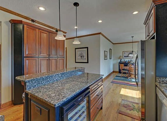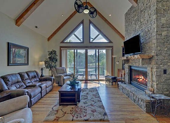 Rock-faced gas-log fireplaceBeautiful wood oak floorsLarge great roomLarge master suiteBeautiful wooden doorsGentle slope lakefront lotOrnate ceiling beams