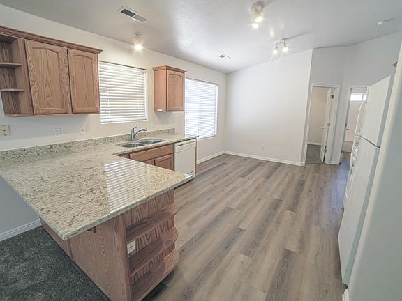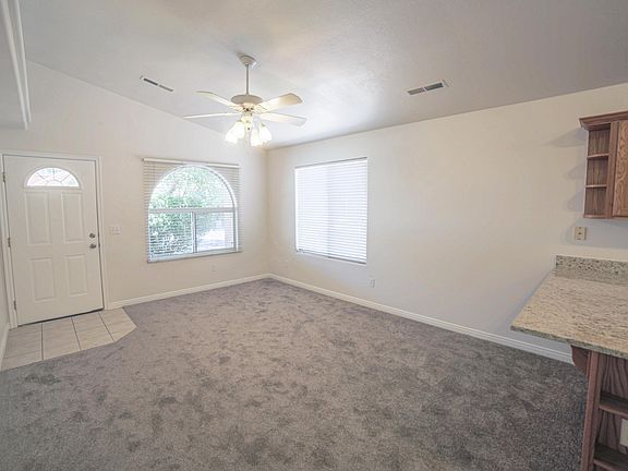 Here's a great 2-bedroom home in the beautiful, tucked away community of Rainbow Canyon. Close to the Hurricane Cliffs, hiking trails, rodeo grounds, Hurricane Airport, and all the dirt roads and public land south of Hurricane! Community includes a clubhouse, indoor pool, and picnic area. This home was recently refinished with new granite countertops, new carpets, new LVP floors and new paint! Master bedroom has direct access to the outdoor patio. A big shade tree in front of the house makes for some nice front porch sitting. Two car garage includes additional storage room area for your gear. Washer and Dryer space in an oversized closet.