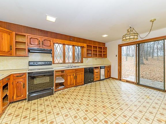 Wow! This is not a property you want to miss out on! This 5 bedroom and 3 full bathroom split level offers about 3.500 sqft of living space. The formal living room and family room both feature beautiful stone wood burning stove fireplaces. Bay & bow windows can be found in several rooms. Main floor features a formal living & dining room, eat-in-kitchen with sliding doors to back yard. The lower level features the family room with another set of sliding doors, as well as a den & 1 bedroom. 2nd floor boasts 3 bedrooms & 2 more bathrooms. The master offers an attached master bathroom. Enjoy extra storage space & a work shop in the partial basement. Attached 2 car garage with oversized driveway. 2 separate patio areas. Deck off of master bedroom. Close to major highways & next to the golf course. Great location!