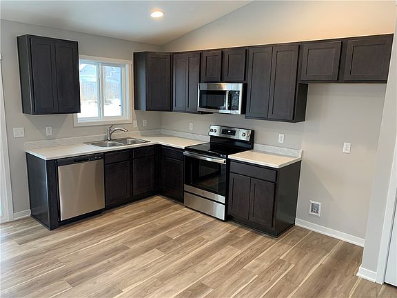 New home built by Madden Construction. 6 YEAR TAX ABATEMENT! Newport plan with tuck under garage. Lot has alley access in back of lot for potential extra parking in back yard. Vaulted ceiling in open concept living room and kitchen. Kitchen features beautiful nutmeg maple cabinets with stainless steel GE appliances. LVP flooring throughout kitchen and bathrooms. Slider patio door goes out to nice flat backyard with mature trees providing shade. Full basement with bath stubs and egress window for future bedroom. ***Living room in basement is finished with nice daylight window. (Added after first being listed. List price did not go up with change)***. 50-gallon hot water heater and efficient mechanicals will make this home HERS rated, which helps save money on energy bills. Wifi enabled thermostat and garage door opener for peace of mind when away from home. Passive radon system installed. Buy from a local family-owned builder who takes pride in every aspect of every home. Any testing or mitigation to be paid for by buyers. Preferred lender offering $2,000 in closing costs for qualifying buyers. Ask about our preferred lenders programs and offers. Agent has interest