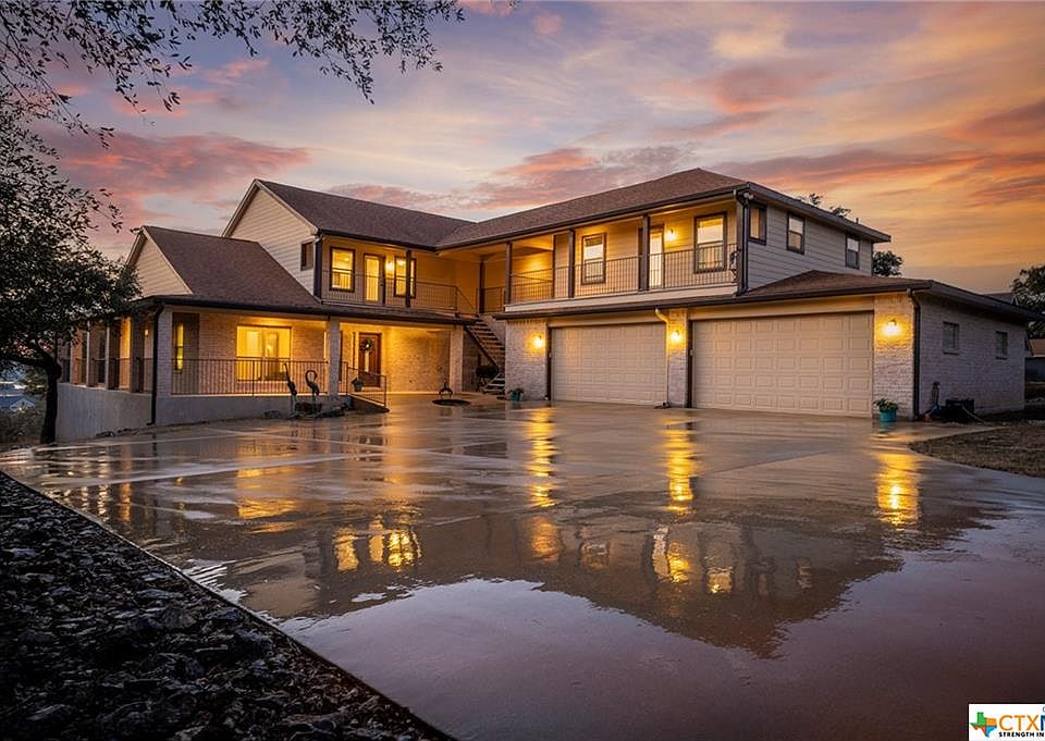 Spectacular lake views from multiple locations through out this beautiful custom built 2800sqft home sitting on 1 acre in North Lake Estates. No HOA. This gorgeous custom home has so much to offer from the custom layout, master bedroom retreat, upstairs bonus room for a second living room or game room, guest apartment (880sqft) over the 4 car extended garage to hold your lake toys. Gas cooking, heating, and water heater. Home also has a 15KW generator installed. Close to New Braunfels, Gruene and less than 3 miles from the Canyon Lake Marina. Easy commute to Austin and San Antonio. Please verify all measurements and schools. Property cannot be divided and includes lots 19 & 50.
