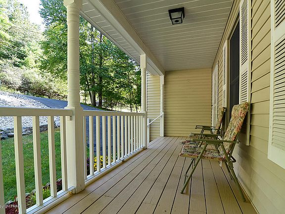 Very well cared for 2 story Colonial in East Stroudsburg School District. Lovely front porch as you enter this charming home. 3 bedrooms, 2.5 baths, newly remodeled kitchen with granite counter top and tile flooring. New stainless steel microwave and range. Living room has a brick fireplace. Great space for entertaining. Formal dining room w/ tiled floor can easily accommodate 8-10 people. Master bedroom has a 5.5 x 7.3 walk in closet. Finished lower level offers family room, with an area for an office, or guest quarters. Economical heating- propane forced air heat with some electric baseboard in family room in lower level. Central Air conditioning. 1 car garage with paved driveway and extra parking. Nicely landscaped. Short walk to the pool. A lot of bang for your buck! Check it out!