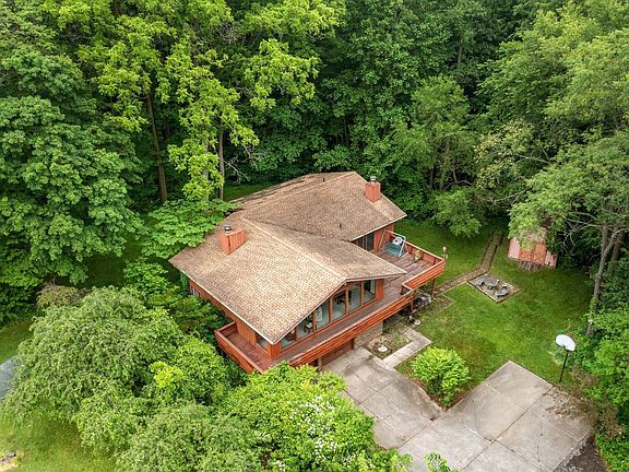 MULTIPLE OFFERS!!! ALL OFERS DUE IN BY 8PM THURSDAY. SET IN AN IDYLLIC SETTING WITH GORGEOUS WOODED VIEWS, THIS HOME, WITH LOADS OF POTENTIAL, OOZES WITH NATURE, PEACE AND TRANQUILITY. The open upper main floor living/dining room has a 13' high cathedral ceiling with 6 picture windows to gaze outside and a sliding door out to the large deck plus a brick wood burning fireplace. The kitchen has oak cupboards, brick backsplash and a cozy eating area. The primary has 2 closets, sliding door to the deck and a full bath. The other 2 main floor bedrooms also have 2 closets each and share another full bath with a shower. The lower level has a large paneled family room with a brick fireplace, wet bar, 1/2 bath and a finished laundry room with built-in cabinets. The large 22 x 28 garage also has an extra storage room.
