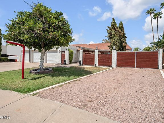 Great mid century modern vibe with stunning curb appeal. There is so much character and possibilities in this one of a kind residence. Marble floors, open concept kitchen, luxurious primary suite. 4 bedrooms over 2300 sqft on over a third acre lot. No HOA, this expansive lot features a sparkling pool, an above ground hot tub, three car garage with additional storage room and a urinal along with RV gate and parking with hookups, side play area for kids along with a shed. This house has everything. Popular location close to the Gilbert exit on the North 202 freeway gets you verywhere in minutes