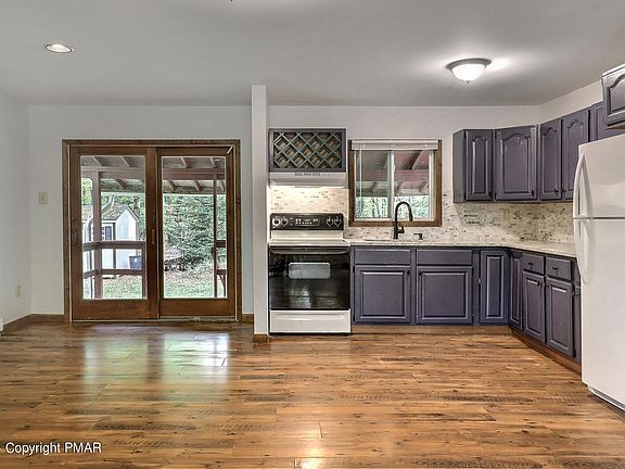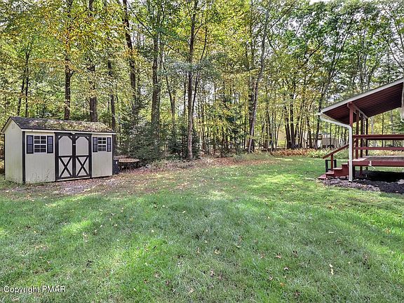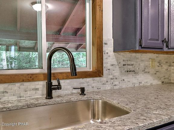 Nestled in the scenic Pocono Mountains, this charming 2-bedroom, 1-bath home is the perfect starter, second home, or vacation retreat! Whether you're seeking a peaceful getaway or an adventure-filled weekend, this home has it all. Located just minutes from skiing, the Delaware Water Gap National Recreation Area, multiple golf courses, and exciting ATV trails, you'll have endless opportunities for outdoor fun all year round. The inviting kitchen features gleaming granite countertops and a stylish tile backsplash, while the cozy living room boasts a stone wood-burning fireplace—ideal for warming up on chilly winter nights after a day on the slopes. The outdoor space is just as impressive, with a flat yard perfect for parties, and a large rear covered deck where you can enjoy your morning coffee while soaking in the beautiful fall foliage. Recent updates, including a brand-new roof, ensure that this move-in ready home offers peace of mind and comfort. Don't miss out on this Pocono gem!