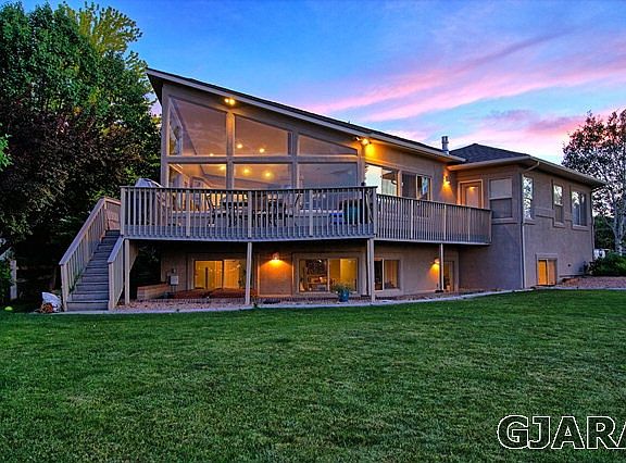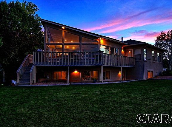 Stucco rancher with walk-out basement in private South Rim cul-de-sac on Redlands view lot overlooking the Colorado River & Grand Junction's city lights. Close-in location. Beautiful back yard lawn with room for garden. Vaulted ceilings in main living areas with picture windows in every direction that capture the best panoramic views of the Grand Mesa & the Bookcliffs that you find on the Redlands! Captivating rock fireplace in the living room is the highlight of the entertainment area. New granite countertops & stainless steel appliances in the kitchen. Main level master suite with large 5 piece master bath has lots of natural light & big walk-in closet. Walk-out basement features family room & 3 guest bedrooms with a full bath. Don't miss this gorgeous home on a hard-to-find, one-of-a-kind view lot at an affordable price.Bathrooms Info: 3-full
