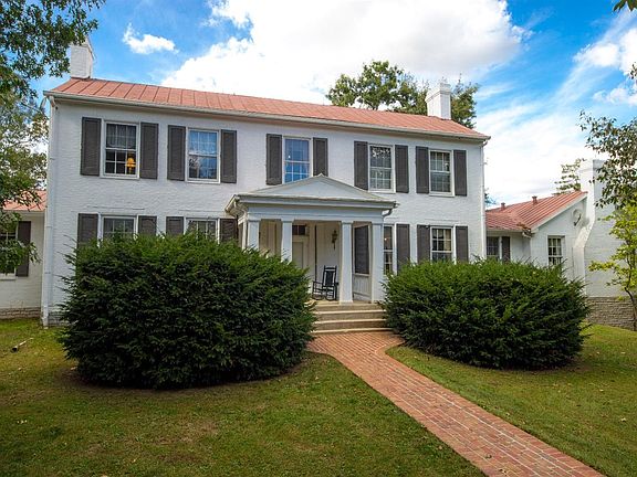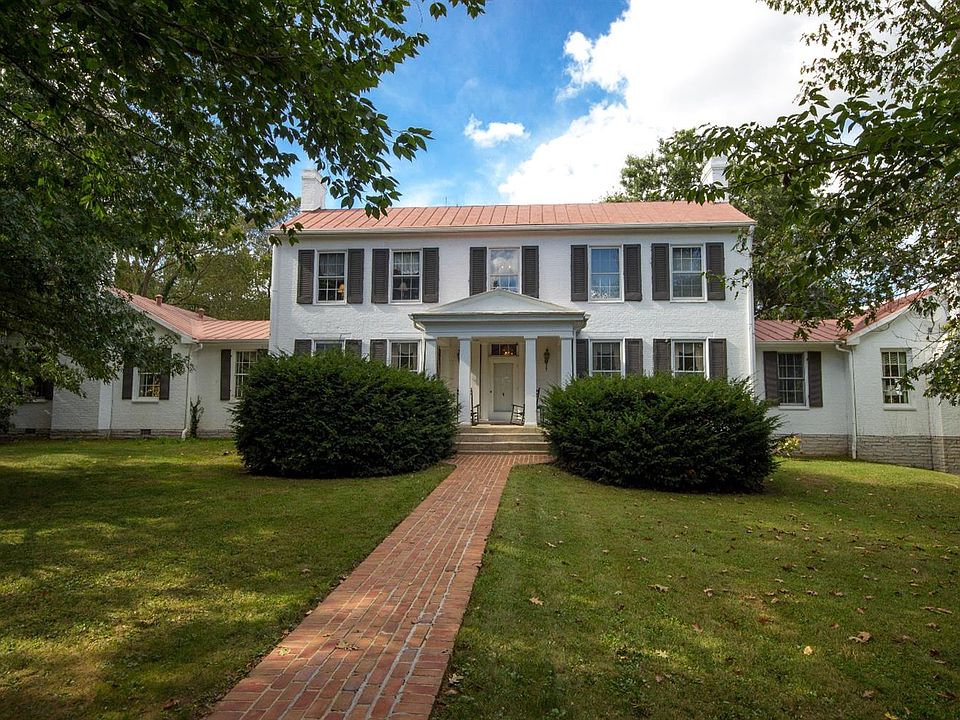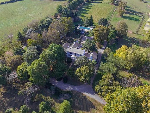 The Circa 1854 estate has been lovingly restored while keeping the charm of yesteryear. Located at the end of a winding, tree lined drive, the home is surrounded by stately trees and intricate brick walks. The main house features 10' ceilings, ash floors, large rooms, 10 fireplaces, and a first floor owner's suite with 2 bathrooms. The estate includes a 12 stall barn, 6 paddocks/fields, guest house circa 1794, 3 car garage with apartment, inground pool, and 2 story pool house. Additional land and barn is available from an adjoining farm.