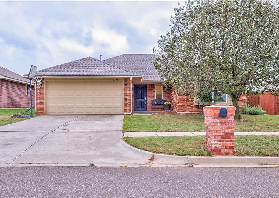 Lovely 3 bedroom, 2 bath home in a great location just minutes from I-40 and Tinker. Open floor plan with large windows to let the natural light shine in. Wood floors in living area, corner fireplace and door to back patio. Kitchen has updated backsplash, granite counters and spacious eating area. Master bedroom with walk-in closet, ceiling fan and full bath that features double sink vanity and tub/shower. Secondary bedrooms are very spacious with great closet space. Large fenced backyard. Storm shelter in the garage. Newly painted interior, new carpet installed and roof has just been replaced. You'll want to see this one!!