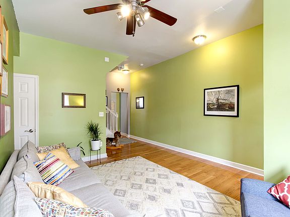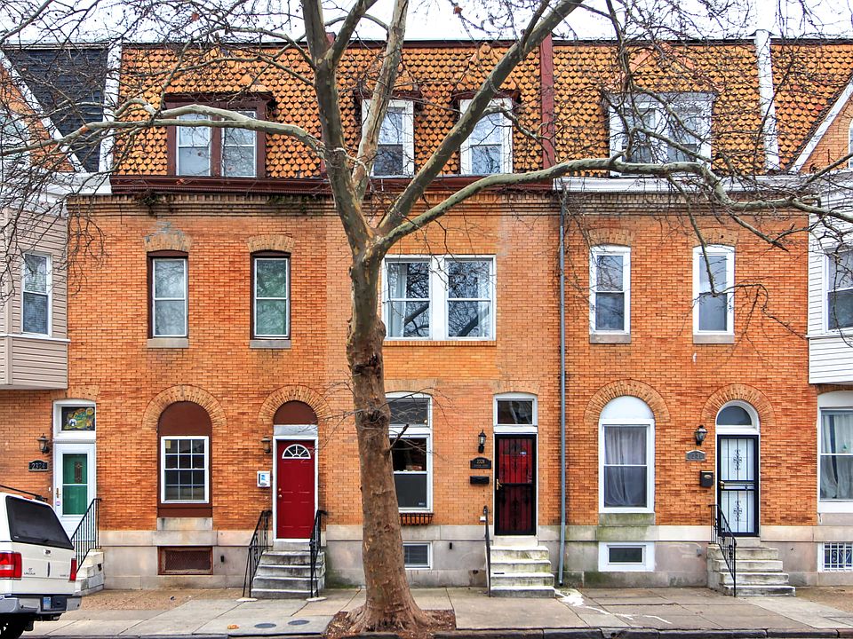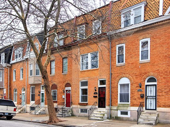 This historic ~arts and crafts~ townhouse is four bedroom, two and a half baths creatively renovated by an artist. Hardwood oak floors have been restored throughout the first floor, and walls were knocked down to expand the space. The ceilings are 9 feet high throughout (at a minimum) so the entire house feels very open. The owner is an avid cook and the ~workshop~ style kitchen has an open plan, with plenty of room for that antique hutch you~ve been eyeing and lots of counter space. A mix of modern and salvaged fixtures, handsome Douglas Fir doors and up-cycled antique details give the house a unique and eclectic character. The second and third floors both have a large and small bedroom - any of which can be used as an additional living room, yoga room, home office, music room or art studio. A louvered skylight over the stairwell allows maximum light in cool weather and is shut in hot weather to minimize utility bills and control the ambient temperature in the house. Light-filtering honeycomb window blinds - throughout the house - facilitate temperature control and add a cozy, softly lit ambiance to each room. The basement is unfinished, dry, and is the size of the entire footprint of the house, with plenty of storage space. Washer and dryer, less than two years old on the west side of the basement, and on the east side a new glass block window offers maximum security and plenty of daylight. The third floor, formerly an artist~s studio, has recently been completely renovated. It has a different color scheme and a more contemporary look. Could be the perfect roomy guest suite for visitors, or even an Air B&B for the many visiting Hopkins applicants or parents that visit the campus year-round. The fenced and gated patio off a small balcony behind the kitchen is flooded with the western sun - grow flowers, herbs and vegetables in the wooden planters and store your garden tools and bike in the shed. Old Goucher is the new Brooklyn! Live where you work, or commute by train to DC or Philadelphia in an hour. Historic architecture, broad avenues, walking distance to many amenities: Penn Station, the main campus of Johns Hopkins University, the Baltimore Museum of Art, various bars and restaurants. Adjacent to prominent neighborhoods - hip Remington, diverse Charles Village, arty Station North and culturally rich Mount Vernon. Accessible by car to Routes 83 and 95, and close to a network of urban bicycle paths.