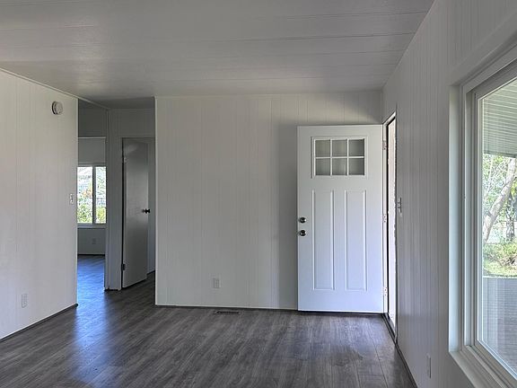 Newly renovated 3 bedroom, 2 bathroom house on a large, fenced lot. Freshly painted inside, with new laminate flooring throughout, new bathrooms, countertops, doors, new Milgard dual pane windows and a new Wood stove. There is also washer/dryer hook-ups. and a large covered porch on the front of the home facing the beautiful yard filled with fruit trees and a creek. There is ample parking and it is located in a nice, quiet neighborhood. Owner pays for water and sewer and pest control, Renter is responsible for propane, electricity, trash, and internet. One year lease.