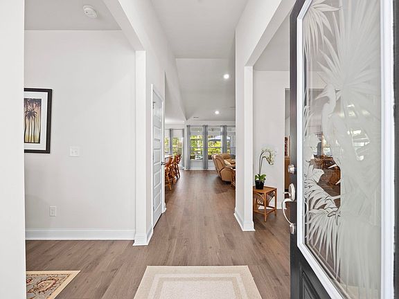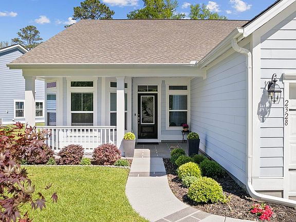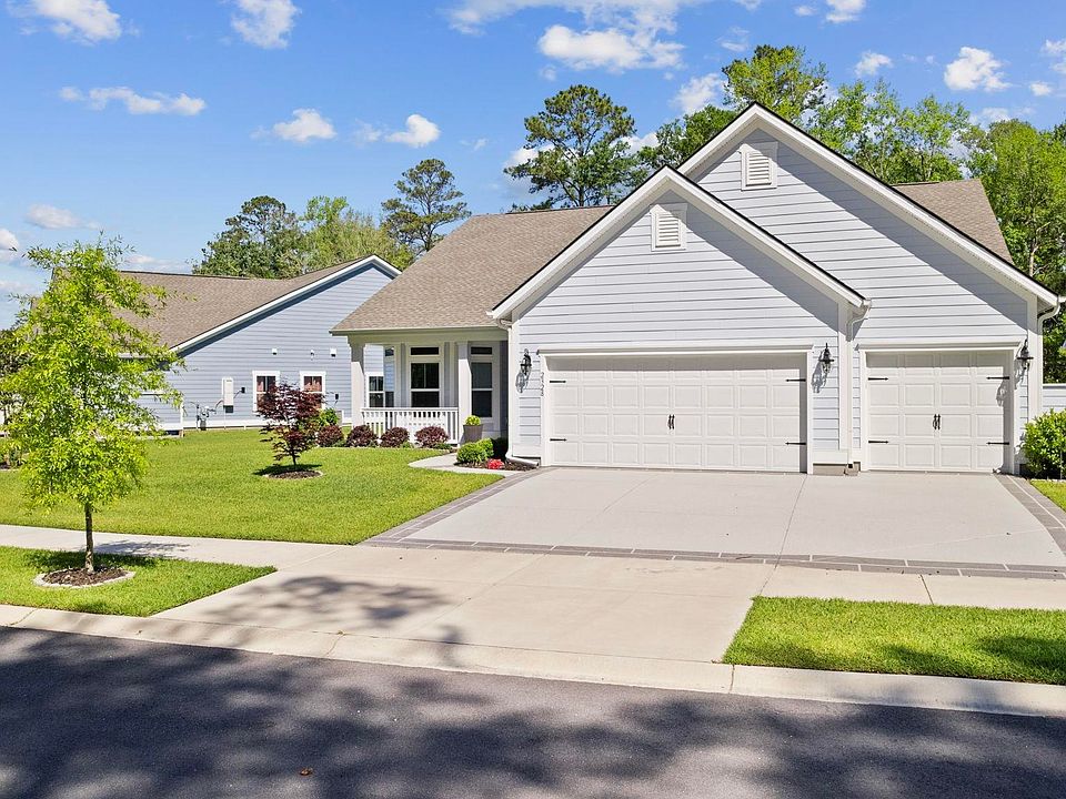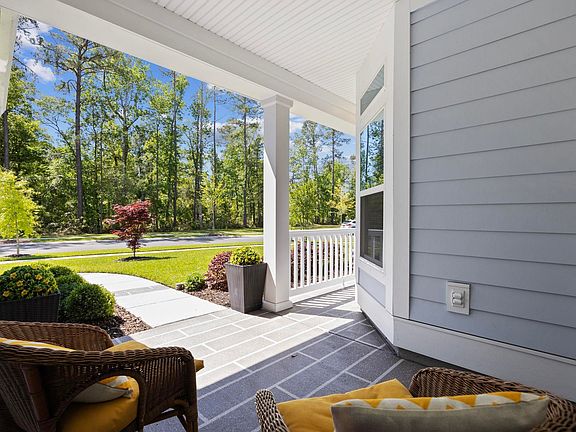 Welcome home to this stunning, better than new home in Belle Harbor in The Market Common! This home has a fantastic location on a quiet street that ends in a cul-de sac. This 3 bedroom, 2 full bath, 3 car garage is beyond move in ready and better than new. Park in the extended painted concrete driveway, walkway, and front porch and be greeted by the beautiful open floorpan. To the left is a room that has been utilized as an office and has a bay window and plenty of natural light. To the right is the formal dining room that opens to the kitchen and living room. The kitchen is gourmet with stainless steel appliances, a natural gas range, granite countertops, staggered cabinets, tile backsplash, breakfast bar and matching tile kick plate backsplash. Sliding glass doors off of the dining nook lead to the extended screened porch. The patio outside of the porch is also extended and faces the woods. Arborvitae are growing on the sides and will develop into nice privacy. The owners' suite is on the first level and is spacious, has a ceiling fan, and two walk-in closets. The owners' bathroom has a tile shower, granite countertops, and double vanity. The other two bedrooms are also on the first floor and have their own closet and share a bathroom with granite countertops and a tub/shower combo. The laundry room is off of the 3 car garage. Additional features include a gas line outside for grilling, gutters, an irrigation system, two custom etched glass doors, and an insulated tankless hot water heater. Residents in Belle Harbor get to enjoy the community pool, playground, tennis court, sidewalks and lakes. Living in this wonderful community there is easy access to the beach, dining, shopping, and entertaining... all is a golf cart ride, bike, or walk away! Trails, bowling, a dog park, a movie theater, playgrounds, and gyms are all just some parts of living the lifestyle of The Market Common. Schedule your showing of this fantastic home today!