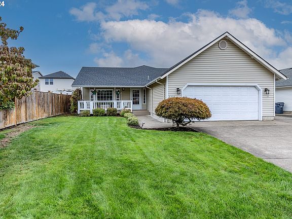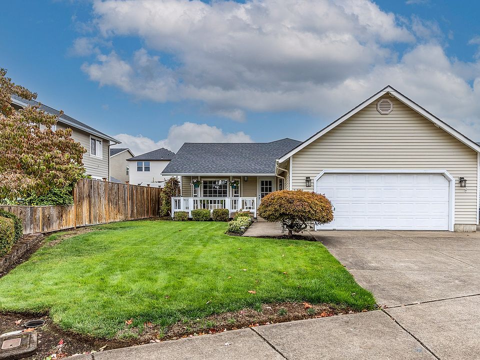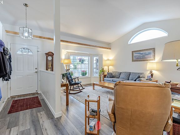 This well-maintained 3-bedroom, 2-bathroom home offers 1,605 sq ft of comfortable living space with lots of natural light. The living room offers additional charm with a bay window and high ceilings, while the vinyl flooring throughout the home makes it both stylish and easy to maintain. This home provides a perfect blend of functionality, style, and convenience. The open-concept kitchen, family room and dining combination is perfect for gathering. Featuring vaulted ceilings, quartz countertops, an eating bar, and all stainless steel appliances included. From here, step out to a spacious covered deck, perfect for entertaining in the fenced backyard. The property also includes an RV pad and parking. Located in the desirable Hayden Bridge neighborhood, it is just a short walk from schools, shopping, and parks.