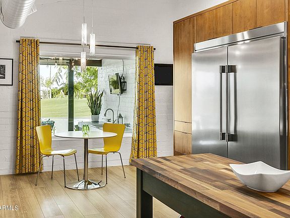 This midcentury marvel has been fully restored from the concrete walls and is better than new. Home sits on the premier lot in the community, directly across the street from entrance to the golf club and home's patio overlooks the 18th green of the golf course. Everything on this home is new, $200,000 renovation includes