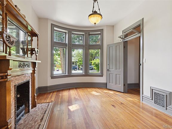 WELCOME TO A RARE BRICK VICTORIAN IN A TREE-LINED HISTORIC DISTRICT IN DENVER'S SLOAN'S LAKE! Perfectly situated on a corner lot it boasts great character and authentic historic detail! Beautifully maintained, this unique residence offers the convenience of modern finishes alongside Turn-of-the-Century appeal. Starting from the embellished entry door, you'll fall in love with the original woodwork & built-ins, bay windows fitted with curved glass, 10 ft ceilings, antique light fixtures, original hardwood floors throughout. On the main enjoy a living room with beautiful fireplace boasting the original hand crafted wood mantel with antique tile, a formal dining room, powder room & bedroom with private closet, updated kitchen featuring Granite counters & Stainless range, leading to the enclosed sunroom. There are two bedrooms on the upper level, the Primary with walk-in closet/laundry room, and adjoining retreat/parlor overlooking the front yard. The full upper bath features an antique clawfoot bathtub and classic black & white tile floor. Recent renovations include fully refinished walls and ceilings, fresh paint throughout the home, newly painted staircase, doors & millwork, updated electrical. The fenced back yard is nicely shaded by mature trees and great for cookouts. From the alley pull into a nice brick 2-car garage. You are ideally situated close to a multitude of great restaurants, shops & public transportation, 3 blocks to Sloan’s Lake. This classic Victorian is move-in ready for you! Come and tour this amazing home!