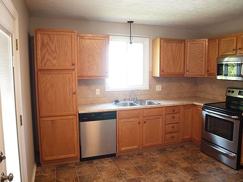 Newly remodeled spacious 2 bedroom unit located in a great area - easy access to the Perry/Massillon area and Hills & Dales Road. Newer paint, carpet in bedrooms, vinyl plank in living room and family room, stainless appliances! Lower level has family room and utility room with hook ups for washer and dryer. Private back yard with patio. One car garage with opener. Owner takes care of lawn, snow, sewer, repairs.