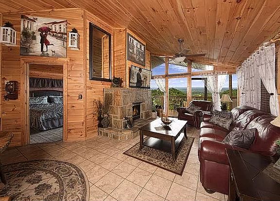 Log Cabin with Magnificent View, semi secluded, on top of a mountain, close to all the attractions. Excellent income history.