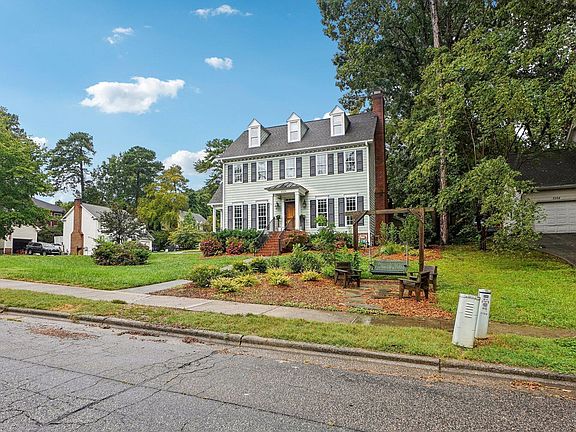 Set on a spacious fenced corner lot, this property features a detached garage with a covered walkway, ensuring easy access year-round. Step inside to find hardwood floors that flow throughout the main level, leading you to a bright and airy kitchen adorned with white cabinets and granite countertops. The expansive great room, highlighted by a wood-burning fireplace, provides the perfect gathering space for family and friends. But what truly sets this home apart is the generous screened porch and walk-out patio. The owner's favorite spot, this outdoor oasis is surrounded by lush greenery, creating a peaceful escape where you can unwind or host memorable get-togethers under the stars. With four bedrooms and a bonus space, there's no shortage of room for everyone. Lots of storage! Awesome location!! 6 minutes from 440 access, 10 minutes from North Hills Shopping Center and just 20 minutes from RDU airport,