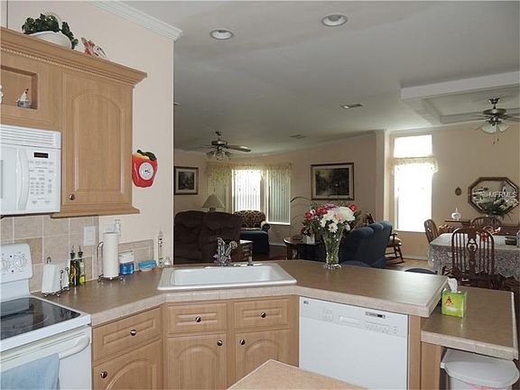 Gorgeous setting for this Palm Harbor Sandburg home. Situated on a lot that gives you a view of woods, lake and a glimpse of the 9th fairway and driving range. An evening gathering place for deer and other wild life here at Cypress Lakes. Formal entryway gives way to the open and spacious floor plan. Island kitchen with plenty of cabinets and counter tops. Entertaining will be a breeze in this home. The open concept allows you to keep your attention on food preparation while interacting with your guests at the breakfast bar/counter. You will immediate see the many upgrades this home features: such as crown molding, tile and laminate flooring, all textured walls with rounded edges, clip windows and tray ceiling. Other upgrades included are double insulation and thermo pane windows. You'll be 'Living the dream' here whether it be sitting by the pool and hot tub or golfing on the Championship golf course.....or if you'd rather socialize in the clubhouse eating at the grill, play cards or do some crafts you can do that too!