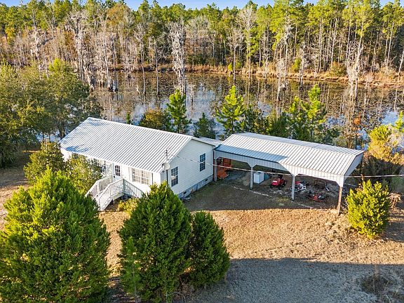 Discover the peaceful charm of this 3-bedroom, 1-bathroom cottage nestled on 11.3 acres featuring a breathtaking freshwater cypress pond. Catch dinner right in your own back yard! Built in 2003, this Jim Walter home boasts Hardie siding, a metal roof, and a poured concrete block lintel, offering a sturdy and low-maintenance structure.
