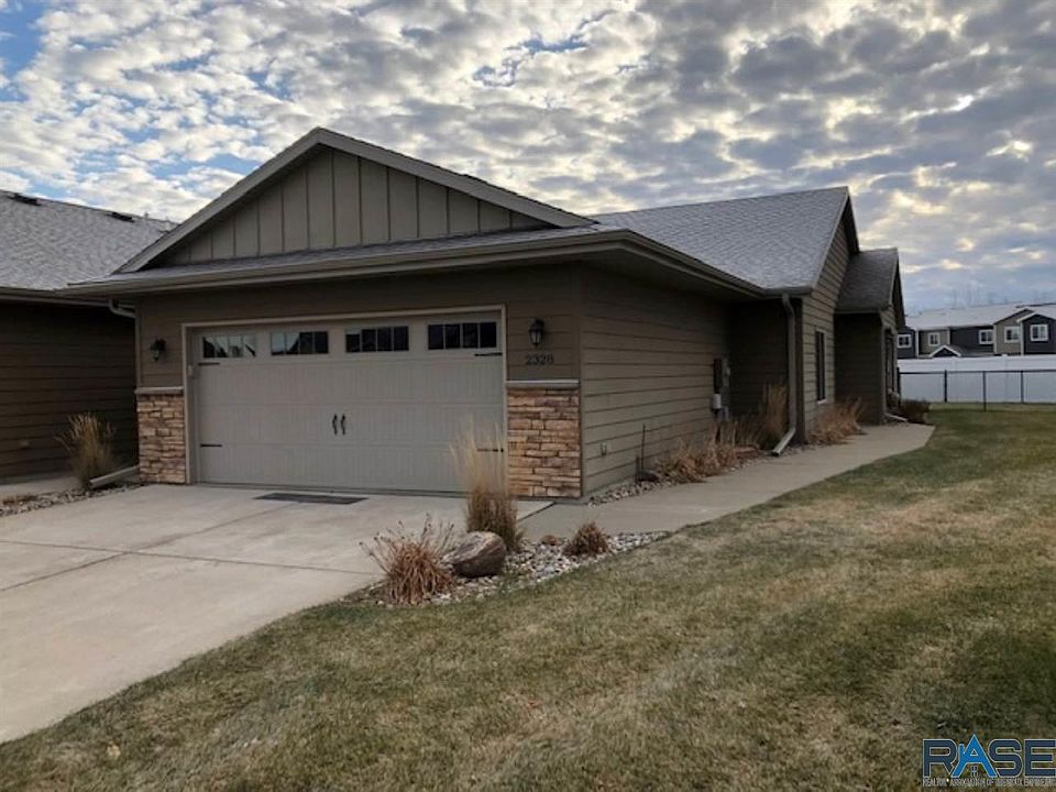 Check out this great southwest Sioux Falls twin home located in a desirable neighborhood near schools, parks and entertainment! This slab on grade home features an open floor plan with a spacious living room, a kitchen with great cabinet space and breakfast bar, and a sliding door to the patio off of the dining room. The large master bedroom features a bath, a walk in closet and a double closet. There is also a second bedroom, full bathroom and main floor laundry/mudroom. Outside is a beautifully landscaped yard, sharp black chain link fence and patio with awning. This twin home has 2 bedrooms, 2 bathrooms, and a 2 stall garage.