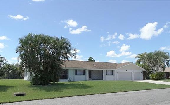 Perfect family home or starter home. 3 bedroom 2 bath home on a triple lot with a 3 car garage! Freshly painted interior and neutral tile through out. A great room floor plan perfect for entertaining. Home has a unique area off the dining/kitchen that could be used as a library, study, homework area or home office. Southern exposure with an over sized screened in lanai.