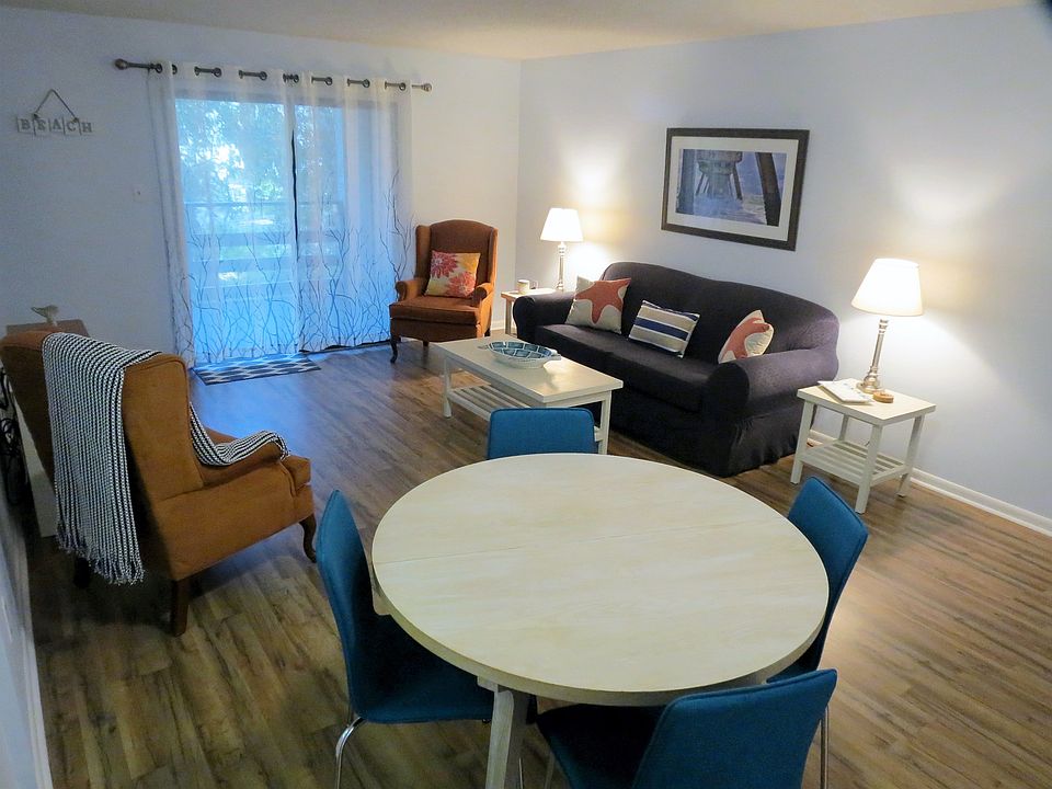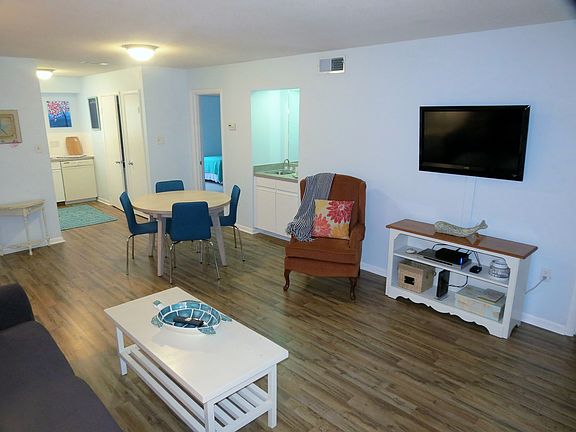 Located just 3 blocks from the ocean, surrounded by tall live oak trees, you have a perfect balance of nature. This is a newly renovated 2nd floor, 2 bedroom/ 2 bath condo. This unit is tastefully decorated, fully equipped and furnished and is currently being used as a short term rental investment property listed on VRBO with 4.8/5 star rating! It is a perfect unit for private residency, long term or short tern rental opportunities. The outside patio is a generous space, perfect for conversation and cocktails. Adjacent to the condo is a very large resort pool and picnic area. The tennis court is private and surrounded by oaks and bamboo. There is a community beach path with direct access to the ocean. No pets are allowed on the premises.
