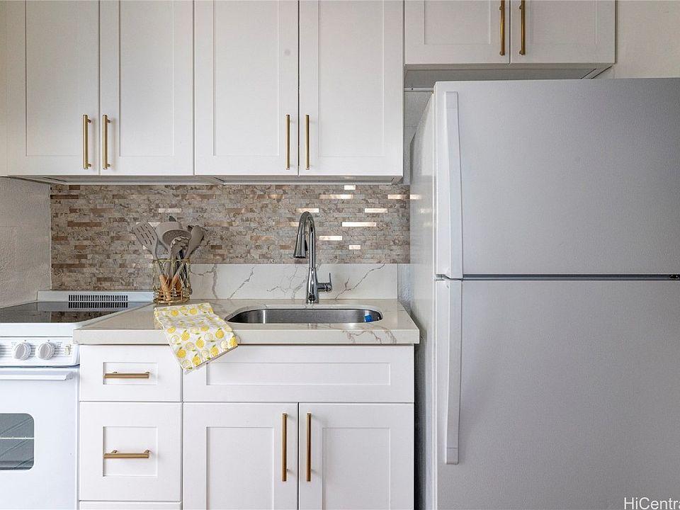 DO NOT MISS this MOVE-IN READY, RARELY AVAILABLE unit! ATTENTION investors or first time home buyers! Enjoy cool Manoa breezes on your covered lanai off of your spacious bedroom. Kitchen tastefully renovated in 2021 with all white cabinets, gold tone pulls, neutral/gold toned backsplash and white marble counters. Kitchen peninsula is great for entertaining, meal prep plus additional storage. Shower re-glazed in May 2023 and all appliances purchased in the last 3 years. This 1-bedroom, 1-bath, with covered parking stall, corner-end unit is conveniently located a block away from UH Manoa School of Architecture and Schidler School of Business in lower Manoa neighborhood, in The Kuahine building. Also close proximity to Mid Pacific Institute, Punahou School, UH Lab, shops, eateries, hospitals and easy access to H-1 freeway. Covered parking stall located close to stairs and next to community laundry.
