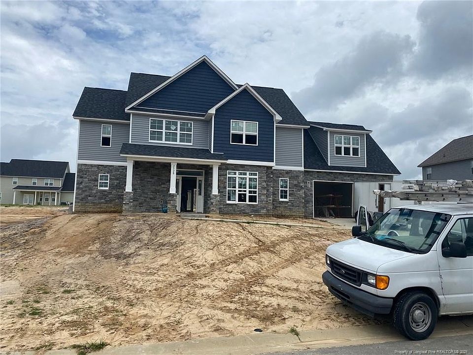Georgetown Estates-Stone & Vinyl 2 Story with 5 Bedrooms, 3 Bath, Covered Front Porch, Two Story Foyer, Formal Dining Room, Kitchen with Dining Area, Pantry & Bar Seating, Great Room with Corner Electric Fireplace, Guest Bedroom Downstairs, Master Up with Large Walk in Closet, Dual Vanity, Separate Shower, 4 Guest Bedrooms Up. Jack Britt Schools. "Built Strong by Armstrong"