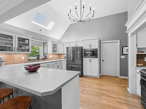 This spacious, meticulously maintained 1.5-story home is nestled on a quiet, tree-lined cul-de-sac in the highly desirable Hunters Ridge subdivision. With 5 bedrooms, 4 full baths, and over 4,300 sq ft of living space, this home offers flexible options for today’s lifestyle. The main level features a serene primary suite plus a second bedroom—ideal for guests or a home office. Upstairs you'll find three more bedrooms and a fantastic bonus room. The bonus room has a peaked ceiling and laminate flooring--offering flexibility for a playroom, office, or fitness space. The heart of the home is the remodeled, light-filled chef’s kitchen with newer cabinetry, appliances and counters. The kitchen opens to a beautiful hearth and breakfast room with fireplace and bay window. Just off the kitchen is the living room with lovely built-ins, accent lighting and new carpet. The backyard is a private retreat with a large deck, gazebo, and under-deck storage. There's even more living space in the finished basement with a TV area, game zone, serving bar, and full bathroom. Located just steps from two award-winning Blue Valley schools, this home offers not only top-tier living but also an unbeatable location.