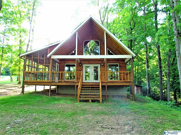 Vacation all year long OR turn this into investment income for rentals. This new A frame cabin is located on the main channel of the Elk River. Private, beautiful views and a boat storage house is located right on the river bank. This quality built cabin is handcrafted with beautiful Amish cut walnut floors, lots of wood detail and crown molding add a rustic touch, while the Granite counter tops and custom made cabinets give it a touch of class. Large open great room with A frame opens to a large kitchen area that features a walk in pantry. The laundry room off the kitchen serves as a mud room and features a laundry sink. Google Christopher Rd Elkmont AL to get to AL Roberts Rd.