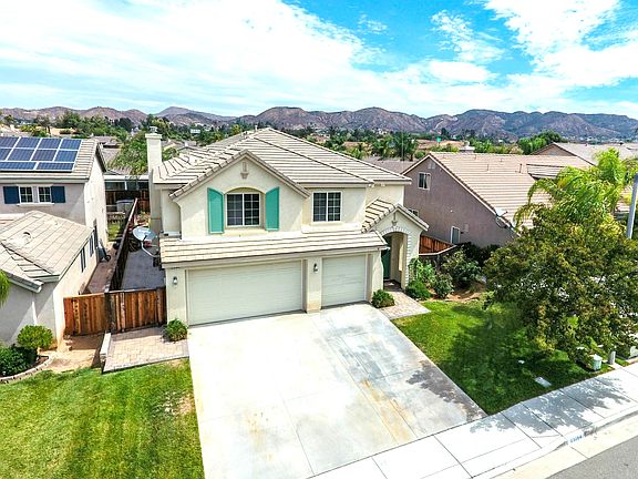 Incredible turn-key home in Palomar Ridge features a beautiful pool, main level bedroom, loft and attractive upgrades!! Within the past 3 years, the Sellers added wonderful upgrades your family will love including the pool and spa (2 years ago), refinished kitchen cabinets, a custom fireplace upgrade and Vivant® security system! Enjoy this beautiful 2-story home with inviting curb appeal and an attached 3 car garage. Vibrant double doors open to a spacious floor plan with a soaring 2-story ceiling, laminate wood flooring & an abundance of natural light through several windows on both levels. The open layout living and dining room offers ample wall space for artwork and a large mirror. In the gorgeous upgraded entertainer's kitchen you have refinished cabinetry with upgraded pulls, a center prep island, granite counter tops and back splash, a pantry and tons of extra storage space. Stainless steel appliances include double ovens, a built-in 5 burner range, microwave and dishwasher. The sink has a high arc faucet. The kitchen opens to the large family room with a stunning raised hearth fireplace finished with stacked stone and thick rustic wood mantle. There is a main level bedroom and bathroom perfect for out of town guests. The carpeted staircase offers storage underneath and leads to a wide landing and spacious loft/game room/office area. You will love this open flexible space! Double doors open to the huge master suite with plenty of room for a sitting area, nursery, etc. The ensuite bathroom includes a separate shower, bathtub, double sinks and spacious walk-in closet with mirrored doors. There are 2 additional bedrooms, a full bathroom with double sinks, plus a laundry room on the second level. You will love relaxing in this recently redone backyard, complete with a pool, spa, covered patio and mature fruit trees! The pool features a wide Baja step with umbrella hole and 7'x7' Catalina® spa with cascading water feature. Dine outdoors more often under the solid 16'x30' Alumawood® patio cover with built-in LED lighting, wet-rated ceiling fan and paver flooring. All the work has been done! All you need to do is enjoy this wonderful property! Convenient to the I-15 Freeway, shops, schools and all that the Clinton Keith Corridor has to offer.
