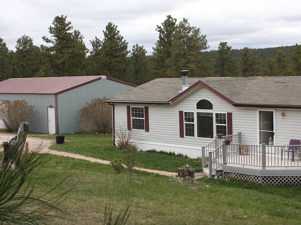 A taste of country living with home and 1500 sq. ft. shop, great access off of US Hwy 85 and perfect for the close commute to town. With 2,052 sq. ft. of living space, this manufactured home hosts 4 bedrooms and 2 full baths with double sinks and master jacuzzi tub. The open floor plan includes large kitchen with bar island, dining area, sunny living room with working stone fireplace and family room. Back deck offers wonderful privacy for evening dinners and get together's, or enjoy the incredible view with your cup of coffee and the morning sunrise. Also appreciate the sizable front deck leading to the formal front entrance, second exterior entrance into mud room that includes laundry area, all composite decking, yard fire pit and over sized 2 car detached Cleary shop/garage. Also, brand new roof, siding, skirting, 2019 propane forced air furnace, central air conditioning, Cambria Improvement District water service, Powder River Electric and situated on 6.64 wooded acres. NOTICE: an additional 21+ acres of adjoining land can be purchased along with subject property.