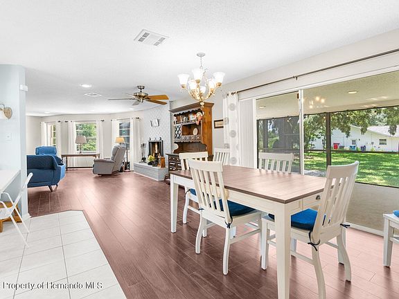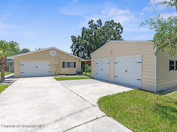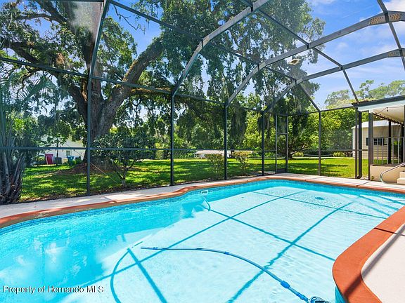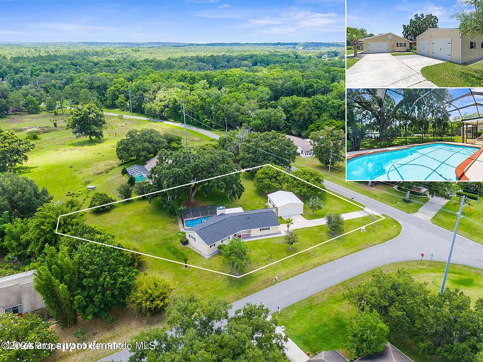 IMMACULATE, PICTURE-PERFECT, move-in ready...it doesn't get much more charming than this!! Your new home offers 3 bedrooms + 2 bathrooms + a private pool + NEW DETACHED GARAGE (24x30) with 2 bay 9' doors with 10 foot walls and electric + 1 car attached garage + brick wood-burning fireplace + nestled on over an acre of land located in beautiful Brooksville Country Club with NO HOA, and has had many rooms recently remodeled! NEW ROOF in Jan 2020. NEW AC in Feb 2019. Wood-look plank flooring in the main living area and dining room. Living room is spacious enough for a media/desk area. Large master bedroom! New master bathroom with modern barn door, new ceramic tile, new pebble-floor shower, new tub, new dual sink furniture-style cabinet with stone countertop, and modern light fixtures. The spacious kitchen offers a breakfast bar, stainless steel appliances, modern backsplash, is open to the main dining and living spaces, and has views of the front yard and backyard/lanai. The welcoming front porch adds to the charm of this home! Glass sliders from the dining room take you out to the large screened-in, covered lanai which is perched overlooking your private screened-in pool and large backyard. Newer hot water heater. Oversized one-car garage with long driveway and turn-around parking area. Large corner lot w/beautiful landscaping. Join the Social Membership to enjoy the amenities of Brooksville Country Club. Amenities include community clubhouse, pool, tennis courts, gym. BCC offers golfing on their renowned 18-hole quarry golf course. Close to historic downtown Brooksville and all it has to offer - cafes, shops, music, festivals, and more! This is a definite must-see!!