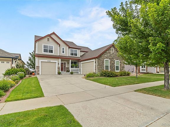 AMAZING VIEWS from almost every room in this 4 Bed/5 Bath, ~4500 sq ft house backing to dedicated open space, rolling hills, PIKES PEAK and the Southern Front Range views. This stunning home boasts gorgeous outdoor living at its best with massive cobblestone covered patio with gas fire place and views that do not stop. Make sure you check out the water feature on the side of the patio. Inside you will find fresh paint, LED lighting, newly installed LVP flooring throughout the open floorplan on the mainfloor. Spacious dining room for all your entertaining needs, great room is expansive with new fireplace tile surround and mantle, chefs kitchen has double ovens, island with gas cooktop, and space for dining, convenient office with french doors and more mountain views. Upstairs you'll find 2 secondary bedrooms both with walk in closets connected by Jack n Jill bath w newer granite countertops, a mini master with its own full bath and walk in closet and the spacious master suite with double sided gas fireplace, mountain views, large windows, sunken tub dual vanities and one of the largest master closets you've ever seen! The basement is gorgeous with custom bar area (check out the wine box backsplash), workout room, game area, secondary family room, storage room and crawl space with barn doors and beautifully finished bathroom. No finishing touch has been forgotten. Move in ready and just waiting for you! Roof, garage doors, gutters, 2 sides of exterior paint only 2 years old, LED lights on main floor, $80K+ in outdoor hardscapes, $70K+ in basement finishes, electric underground fence, 1 year old W/D, brand new bathroom light fixtures. Great DCSD schools, walking distance to schools, Fika coffee shop and walking trails behind the house.