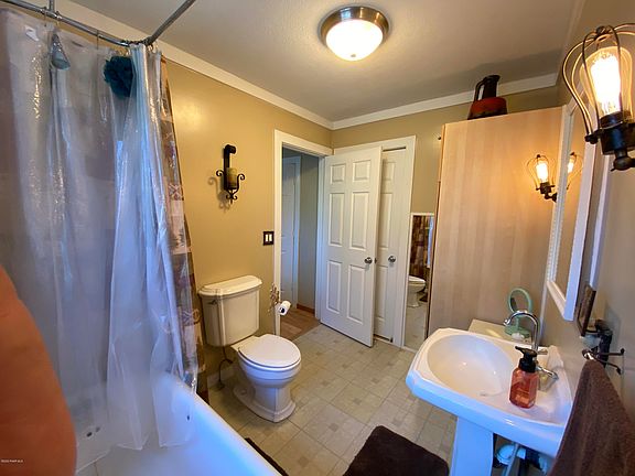 Charming little cabin on 1/4 acre nestled in the tall pines close to town. Completely renovated inside and out. Light, bright & airy with vaulted ceilings & cozy wood stove. Two bedrooms, One totally darling bath w/antique claw tub, completely remodeled kitchen, laundry closet, washer dryer included, built in cabinets, surround sound, and more! It's small but absolutely adorable. Nothing to do but move in!! Seller may leave all furniture. This home has new dual pane tinted windows, new doors, new siding & insulation. Coated metal roof & tons of storage underneath cabin. Small bunkhouse for extra guests. Tool shed & wood shed too. Yard features 3 sitting areas, Built in BBQ & Firepit. Year round access so you can enjoy your cabin any time of the year. Easy walk to Main Street .