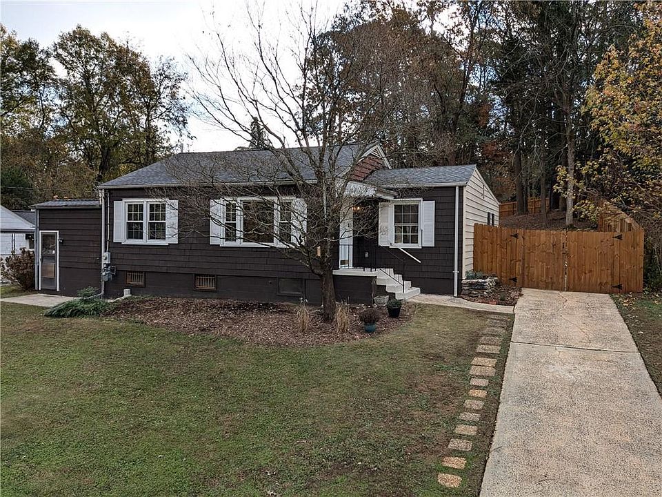 Beautifully renovated home located in Medlock Park, Decatur. Completed in 2021, the kitchen, dining and living rooms of the home were renovated to an open living concept design. Semi-custom cabinets, new hardwood flooring, marble counters, large island, all new stainless-steel appliances (newer dishwasher in 2024), new lighting systems, and new form insulation added to all bedroom walls, and blown-in insulation added in attic. All other original hardwoods throughout home were sanded and beautifully refinished and whole interior was freshly painted. Main bedroom has ensuite bath. Two additional nice size bedrooms serviced by second retro bathroom. This bath was regrouted and refitted with new toilet and cabinet/sink with nicely preserved retro tiling and tub. Newly finished ground level deck completed last year is terrific for entertaining and leads to a large level fenced backyard. The new fencing was installed in 2023. Perfect for a dog run, great kids play area, and large gatherings. Roof was replaced in 2020, new HVAC system added in 2024. Washer/Dryer hidden at end of hallway behind barn doors to maximize space. Home also has exterior entry to basement/cellar with 7 ft ceilings and concrete flooring. Space is currently perfect for work-shop, great protected storage, and wine cellar. The home is located within a 5 minute walk to Medlock Park with playgrounds, baseball fields, and the PATH leading to Mason Mill Park and connecting to miles of nature trails. Medlock Park also connects to the Clyde Shephard Nature Preserve. The Preserve has 29 acres of trails and learning stations and is wonderfully convenient. The home is also in close proximity to Emory University and the CDC with easy access to downtown Decatur and Atlanta.