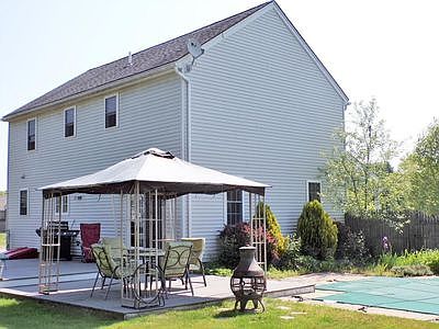 Day dream on your front porch of your 4 bed 2.5 bath Colonial on almost two acres of land in beautiful Hardwick, MA. Built in 2000 this home features exceptional craftsmanship in every direction including, plenty of natural lighting, crown molding, and solid oak hardwoods. Kitchen has a breakfast nook and glass slider where you can access your large split level deck in your back yard. The property has a peach tree as well as raspberry, blueberry and strawberry bushes. The large fenced back yard features a16x30 in-ground pool with heated Jacuzzi seats and 2 storage sheds. The partially finished basement space adds an additional 455 finished sq. ft. w/ recessed lighting and is wired for surround sound w/ DRIcore flooring. Master bedroom has a walk-in closet and full bath on suite. The living room comes wood stove or pellet ready. Amazing value only 30 minutes from Worcester.