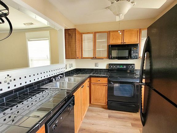 Stunning duplex townhome! Hardwood/Laminate floors throughout the home! NO CARPET! Cute kitchen with some glass front cabinets, tile countertop & oversized pass-through to the dining area! Open living/dining room! Gas fireplace in the living room! Great-sized master bedroom! Each bedroom upstairs has its own bath! Both bathrooms have sliding doors on them! Private back patio! Back to the community park! Great community amenities! NO PARKING ON THE STREET!
