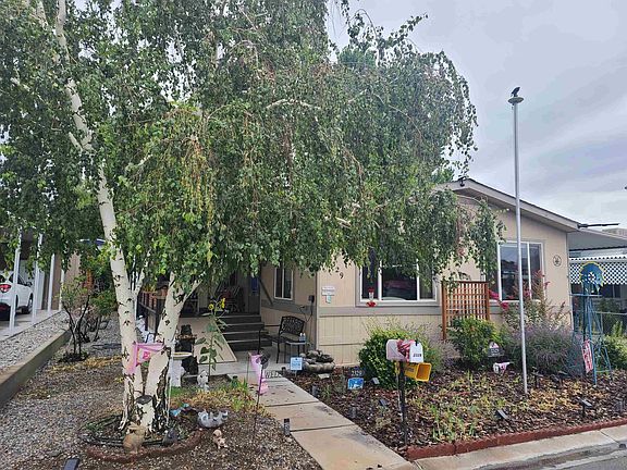 2 bedroom 2 bathroom home with spacious living room, updated double pane windows, remodeled kitchen with tiled counter tops and newer stainless appliances. Walk in shower in master bathroom with garden tub. Huge walk-in closet. Freshly painted both inside and out . Covered deck with view of the mountains. Automatic sprinklers, solar lighting outside along with two storage sheds and storage under the deck. Roof was installed just 4 years ago.