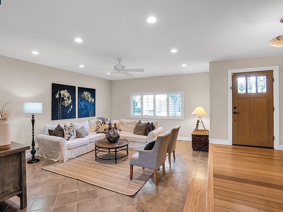 Stunning & meticulously maintained single story home located in the desirable Carriage Square neighborhood. This home offers beautiful features throughout including a spacious floor plan & tons of natural light. Enter into the front living room featuring a large front window, plantation shutters, recessed lighting & open flow to the formal dining room offering glass doors & backyard access. Updated kitchen offers SS appliances including a Wolf range/oven, beautiful wood stained cabinets, recessed lighting & skylight. The open floor plan leads to the family room boasting a fireplace & oversized glass sliding doors with backyard access. Impressive primary suite enjoys backyard access & an ensuite bath with walk-in shower. Find 3 additional bedrooms generous in size & a hall bath with 2x vanity & sleek granite countertop. The serene backyard offers a beautiful space to relax or entertain boasting a tile patio with pergola, manicured landscaping, fire pit, fountain & multiple garden areas. Converted garage for 400 sq ft of multi-purpose space - use as a gym / storage + 2 space attached carport. Additional features include refinished wood floors, Kari Stan carpets, Hunter Douglas window coverings & a new roof. Minutes to Heather Farms park, shopping, dining, PH Bart & K-12 schools.