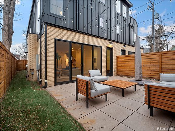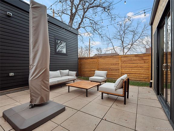 Welcome to this beautifully crafted duplex, a modern gem situated just eight blocks from Sloan Lake. The generously sized fenced in front yard features a delightful covered porch. Inside, the main level boasts impressive 9 ft ceilings, enhancing the sense of space and luxury. The large kitchen is a standout feature, boasting custom cabinetry, elegant quartz countertops, and a 36" Italian designer dual fuel range. The living room, designed for relaxation and entertaining, includes a gas fireplace and large sliding doors that lead to a spacious patio.
