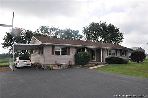 Enjoy cool summer breezes on the covered front porch of this spacious 4 bedroom, 2 bath ranch. It is situated on nearly three beautiful acres with mature trees, a corner lot overlooking the cornfields and hills of Harrison County. The eat-in kitchen is spacious with lots of cabinet space and counter space and comes with a full complement of kitchen appliances. The recently updated master suite offers a large bedroom with two closets and a master bath with newly tiled stand up shower. The kitchen's patio d oors to lead out to a large backyard ideal for gardening and summer fun! In the basement, you will find two finished rooms, great for a crafting, exercising, or an office. There is a lot of storage space inside this well-maintained home including large closets in all bedrooms and in the unfinished areas of the basement. A 30'x40' steel barn will provide all of the additional storage you need. The LP gas tank is rented. The sellers are motivated so schedule your showing today!