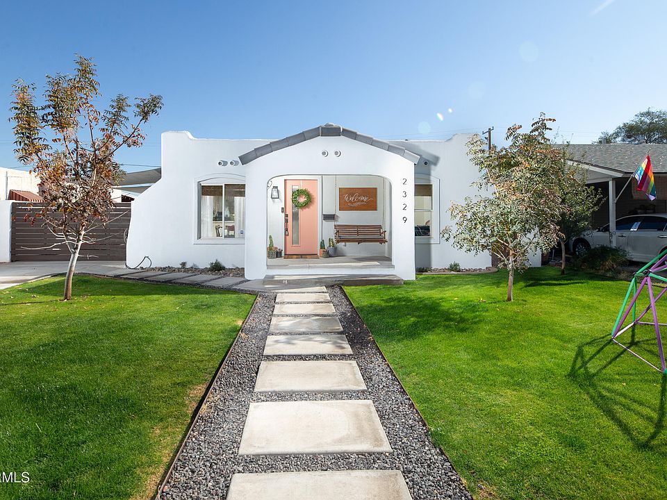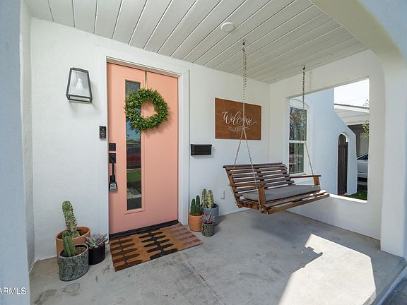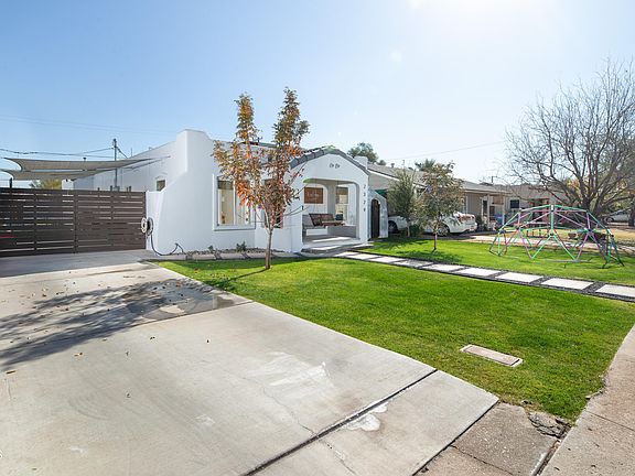 Check out this gorgeous, fully remodeled, Sante Fe style 3 bedroom, 2.5 bath + den home in the heart of Coronado, a neighborhood beloved for its porch concert tours, neighborhood market, cafes and eateries, dedicated biking and walking paths, Oak Street mural alley, festivals, community events, and a friendly spirit of knowing your neighbors that is unique to the Phoenix area. Recent major upgrades include an open concept floor plan, fully renovated kitchen and baths with custom cabinetry, quartz countertops, upgraded appliances including an upgraded 5 burner gas range and oven, upgraded plumbing and lighting fixtures, upgraded tile and LPV flooring, adorable custom built-in reading nook and storage shelving in the flex space den, large walk-in closet in the secondary bedroom, permitted addition of a newer master bedroom with stylish en-suite bath, high profile vanities, upgraded tile shower surrounds, walk-in closet, accent wall, and french doors to the private covered patio with built-in outdoor fireplace, a 9.6kW solar system (average cost savings is $120+ per month!), upgraded electrical (200 amp panel) (2022), dual paned windows, stacked washer/dryer (conveys) with plenty of storage and shelving, newer gas water heater, shade sail covered gated parking, large upgraded storage shed (conveys), and upgraded landscaping in the rear, front and side yards. A fully remodeled 3B/2.5b with this coveted front elevation design, en vogue upgrades, and fully finished exterior are hard to find within the heart of a high demand neighborhood for this price point. Don't miss one of the most turn-key, lovable homes within the most friendly neighborhood in Phoenix!