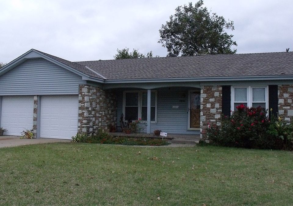 Cute Cute Cute! A great find at this price point! Bathroom has granite and sitting vanity area. Kitchen has large pantry, true beautiful wood countertops, gas stove cooking, and desk area. Dining has builtin hutch. Living is a nice size with fireplace and exit to back patio. Bedrooms are both a good size. True wood floors in beautiful condition. Stunning front door. This home has been extremely well maintained and it shows. AND a 2 car garage! Great backyard for entertaining or peaceful evenings. Ok, has wallpaper which has been taken into consideration in the listing price. Super convenient location to Cheaspeake, Penn Square, restaurants, and shopping. Don't miss your opportunity to own this home.