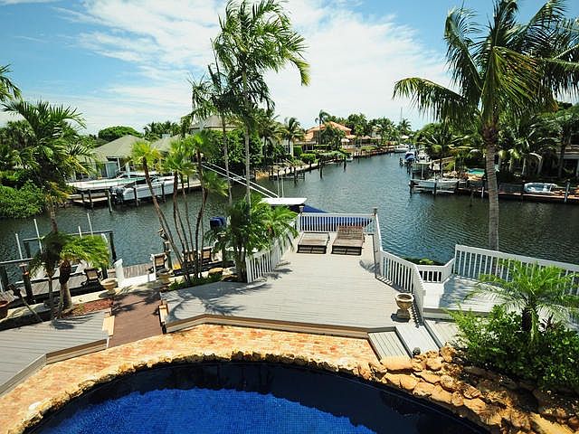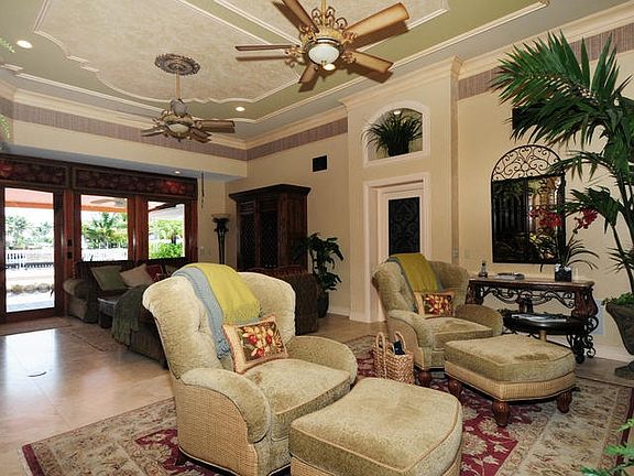 Located in a gated community this 4 bedroom 4 bath home sits on a point lot with 176' of protected deep water frontage and two boat lifts. The gourmet kitchen has two Subzero refrigerators, a Stainless Thermador double oven with warming drawer, gas cooktop, granite and stainless steel counter tops and a large walk-in pantry. A large master suite contains spacious walk-in closets, open bathroom with sitting area, an exercise room and spectacular views from a balcony. Other features include impact glass and shutters, propane generator with 500GL tank, 1,000GL saltwater aquarium, marble and wood flooring and a bonus room.