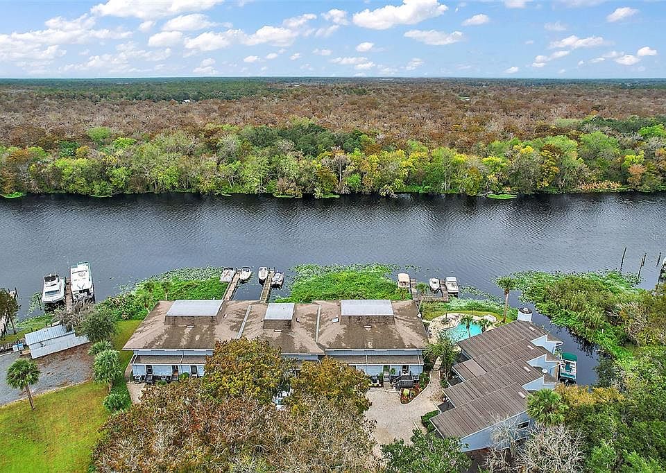 NEW PRICE! NEW ROOF, NEW GUTTERS AND PAINT. Escape to your private weekend retreat along the scenic St. Johns River. Nestled near local marinas and an Amtrak station, this affordable condominium invites you to embrace waterfront living. Imagine having your own water vessel steps away, providing direct access to the St. Johns River. Engage in outdoor water sports or explore Hontoon Island State Park’s paddling, fishing, hiking, ferry rides, and kayaking. Delight in the diversity of the St. Johns River, with wildlife, lakes, marinas, and eateries awaiting your exploration. This one-level condominium complex offers a unique canal-front unit, allowing easy boat access. Unit #1 boasts solid wood cabinets, granite countertops, and JennAir stainless steel appliances in the kitchen. The cozy layout accommodates a spacious living room, ideal for relaxation or entertainment. The primary bedroom features an ensuite bathroom and a walk-in closet with an integrated washer and dryer. The secondary bedroom or bonus room overlooks the canal, offering scenic views and a private entrance. Exclusive to those aged 55 and above, this wheelchair-accessible unit stands out with its convenient lift from the ground level to the front porch deck. Under new ownership, no rentals are permitted, ensuring a serene and cohesive community experience. Explore downtown DeLand and Stetson University for history, eateries, and recreation. With financing options available, make this riverfront haven your gateway to a vibrant and active lifestyle. Affordable monthly HoA fee ensures a worry free lifestyle as all exterior maintenance is handled for you-just lock the door and leave.